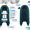 Лодка оснащена всем необходимым: легкие алюминиевые пайолы с антискользящей насечкой и усиленными стрингерами, алюминиевые сиденья из облеченного сплава с нескользящей поверхностью, влагостойкий транец для подвесного лодочного мотора, удобные ручки для переноса лодки, привальный брус с волноотбойником, который защищает баллоны лодки при швартовке.